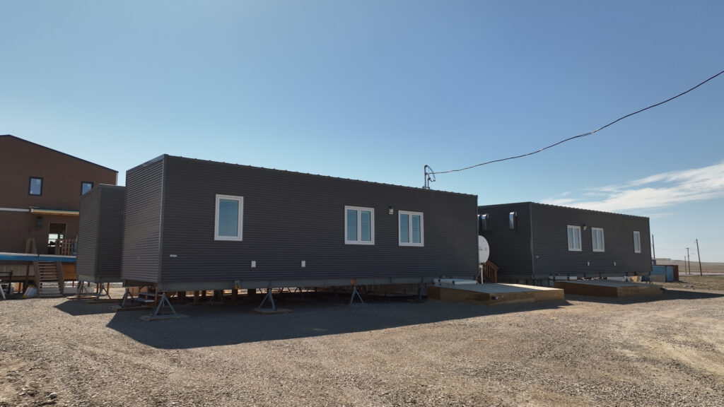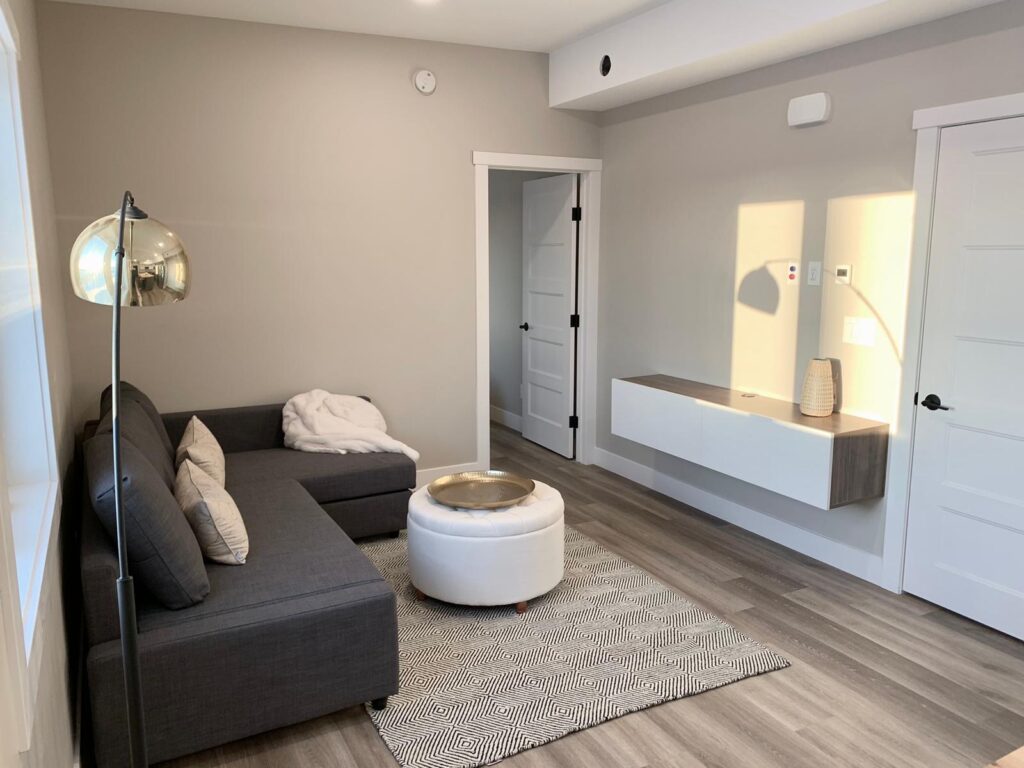1 bedroom units (630 sqft) with shared mechanical room and services. Completed in 8 weeks. Units only share 1 common wall creating a sense of privacy and personal space.